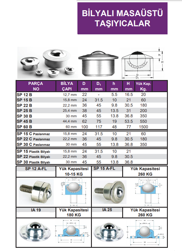 BİLYALI MASAÜSTÜ TAŞIYICALAR