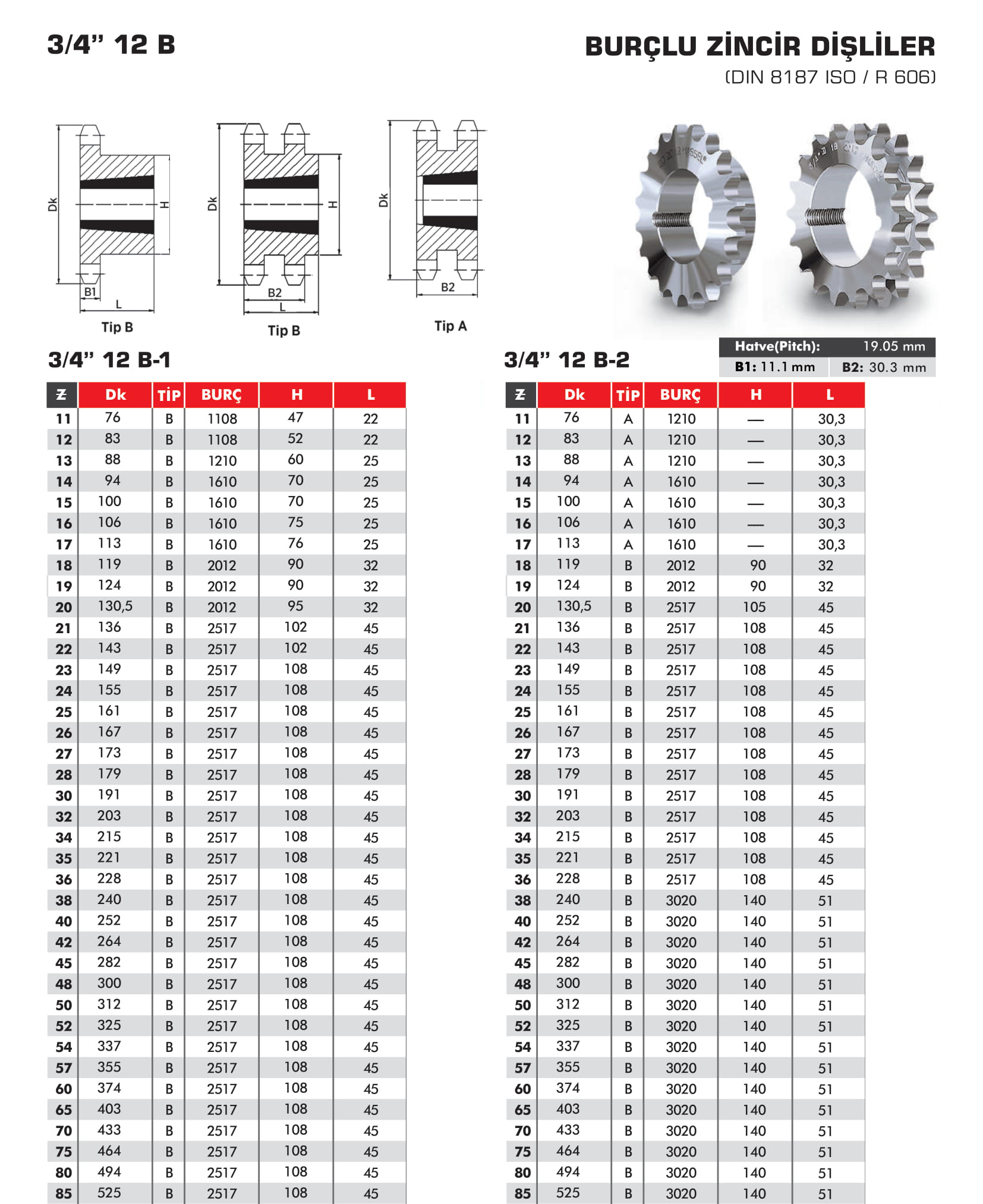 Burçlu Zincir Dişliler 1" 1/2 24B