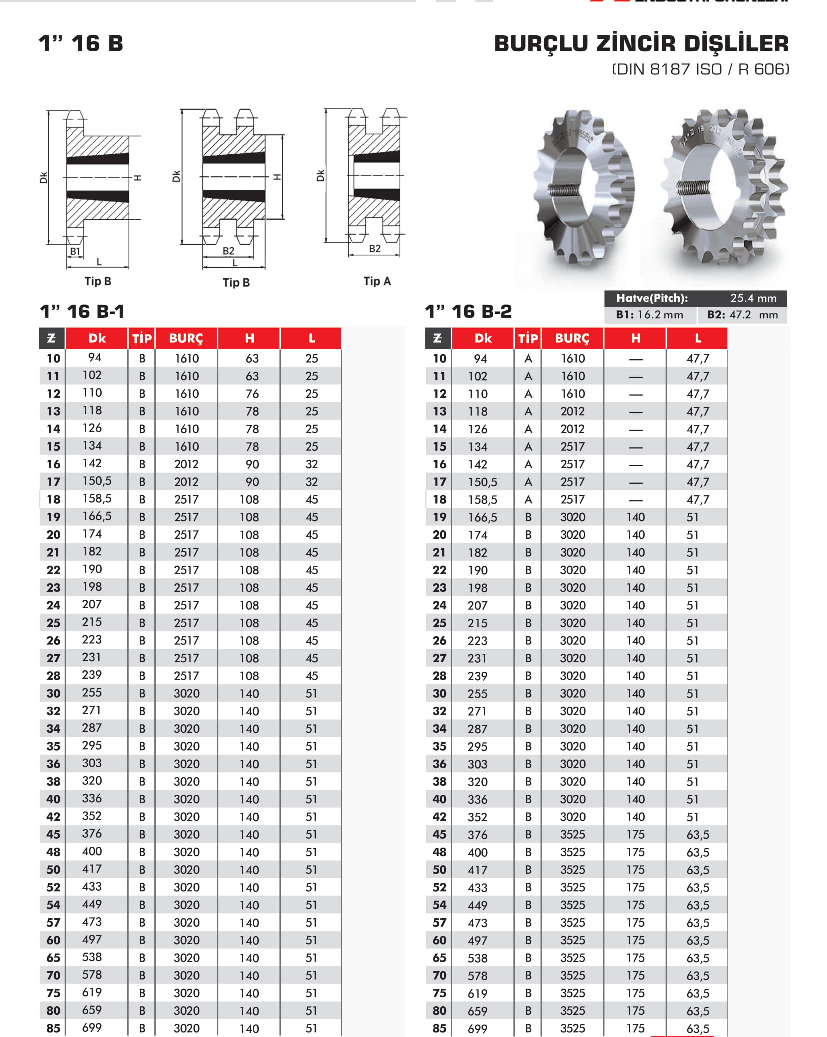 Burçlu Zincir Dişliler 1" 16B