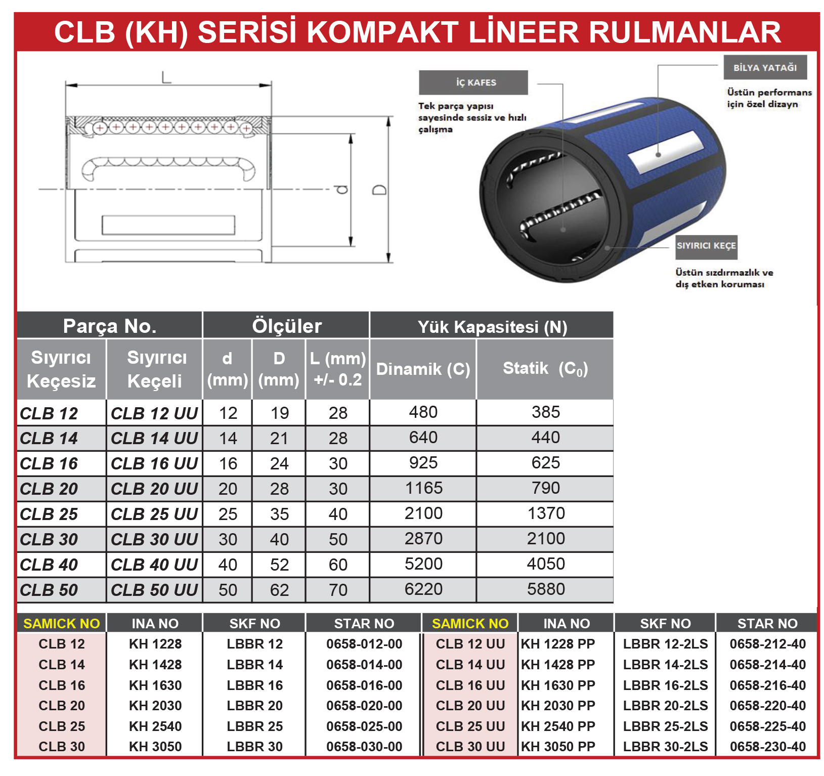 CLB (KH) Serisi Kompakt Lineer Rulmanlar