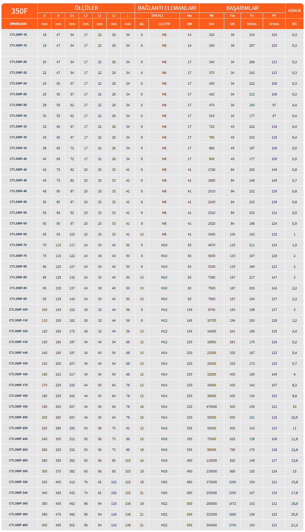 - Daha küçük çaplar için CTL350FM modeline bakınız.