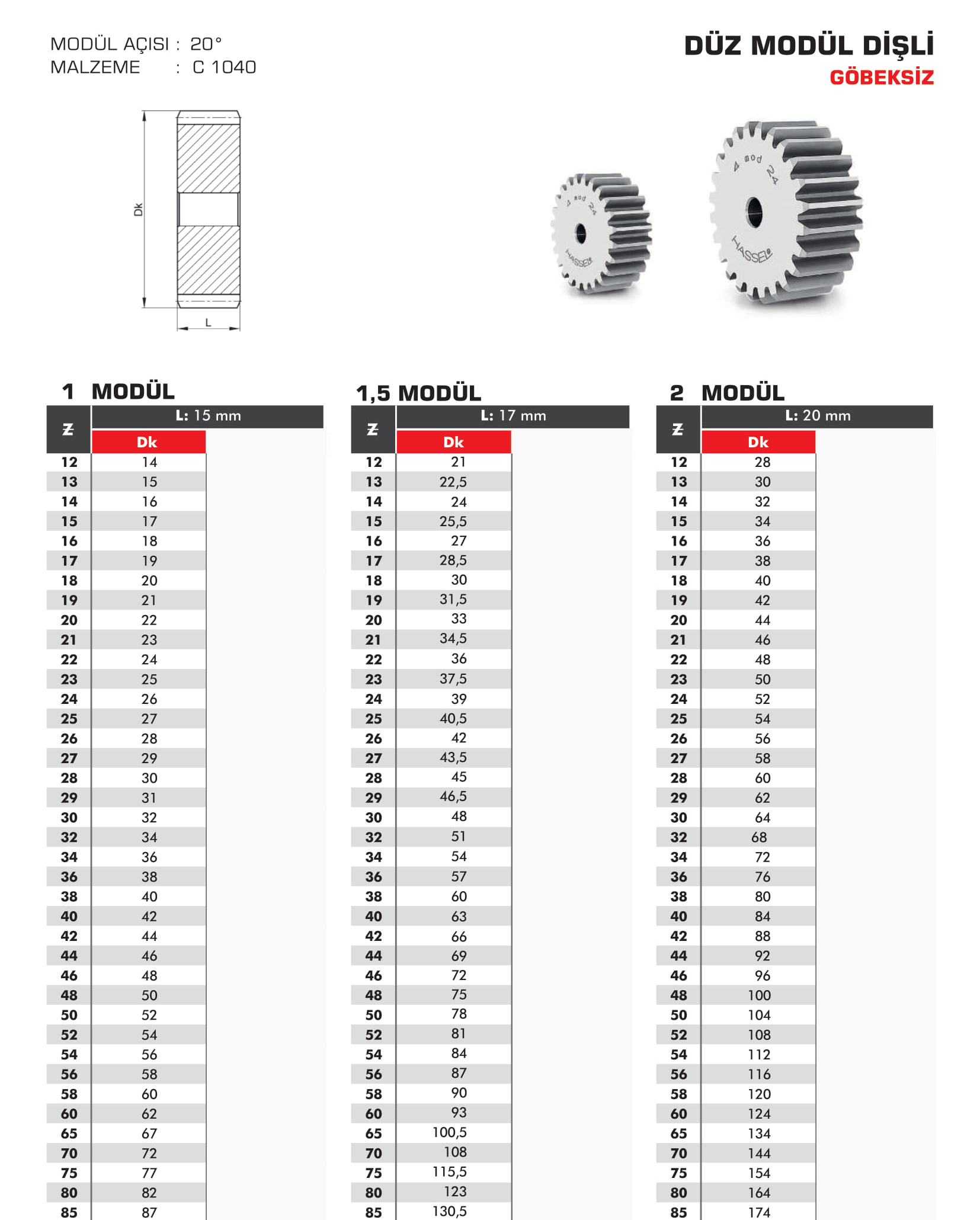 Düz Modül Dişli Göbeksiz 1-1,5-2 Modül
