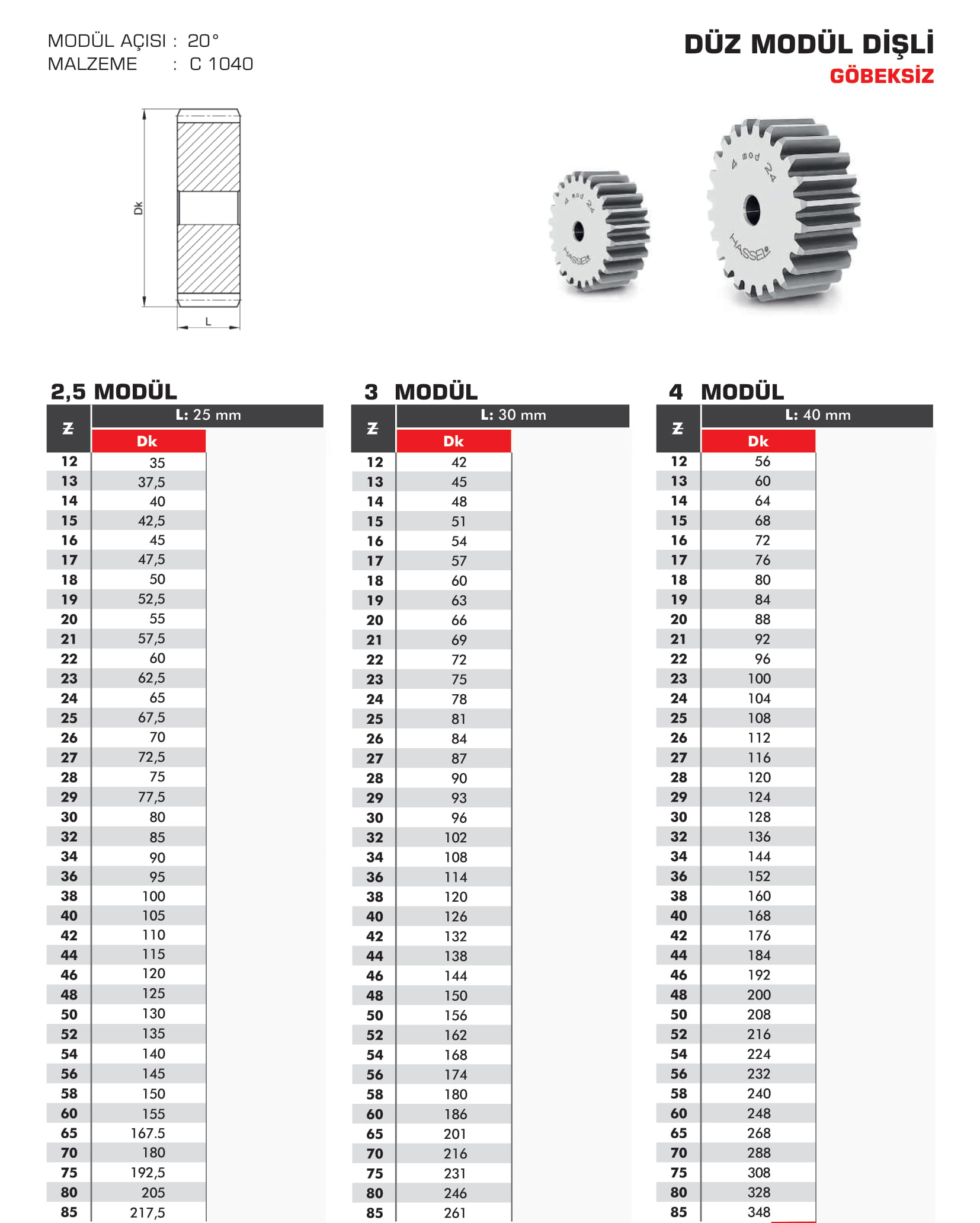 Düz Modül Dişli Göbeksiz 2,5 3 4 Modül