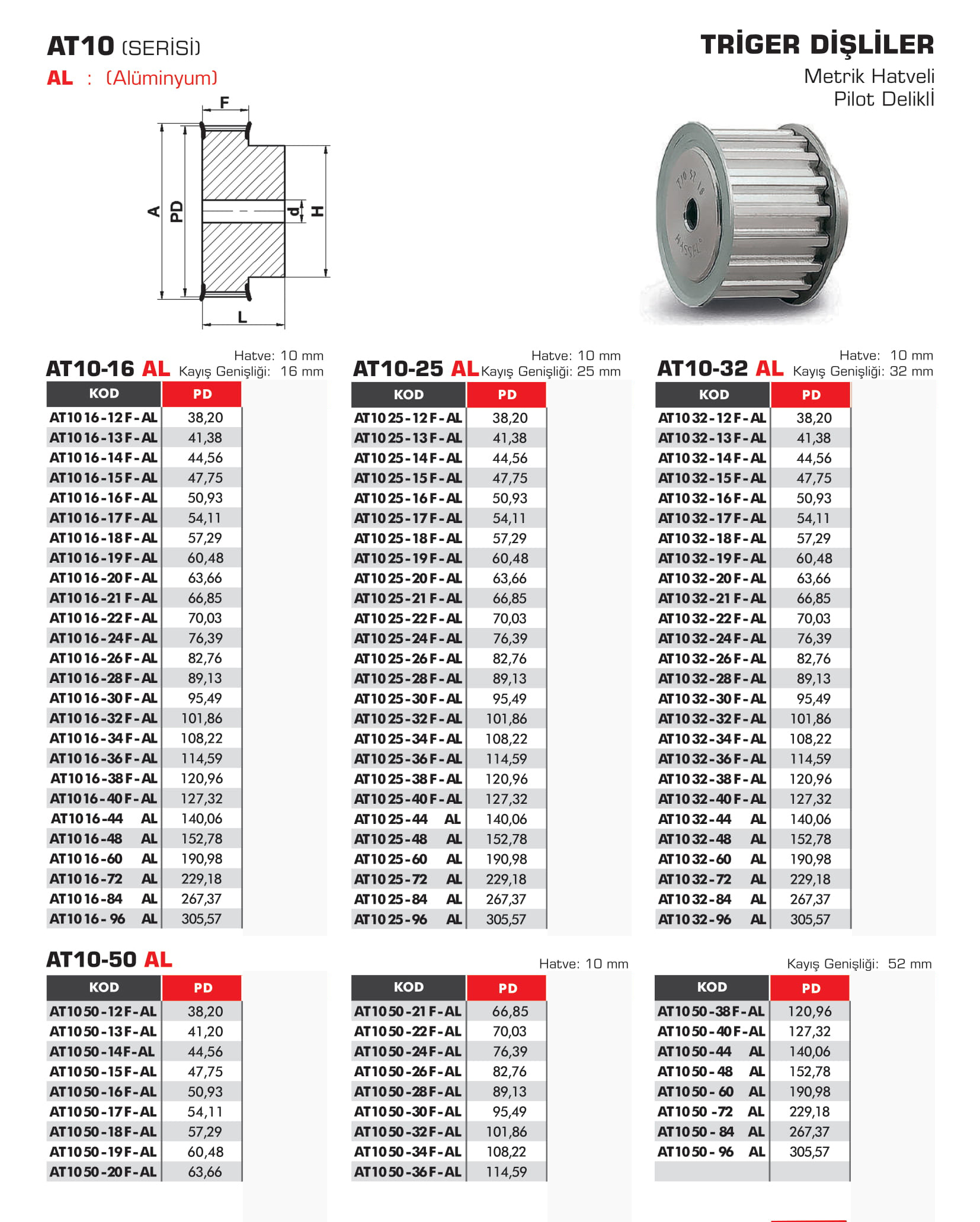 TRİGER DİŞLİLER AT10 16 25 32 50 AL SERİSİ