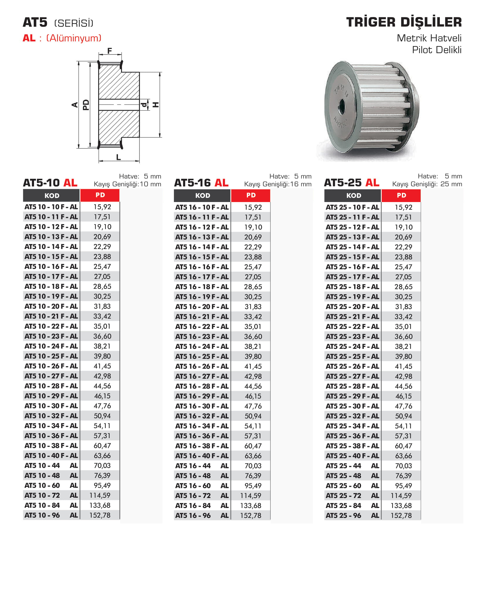TRİGER DİŞLİLER AT5 10 16 25 AL SERİSİ