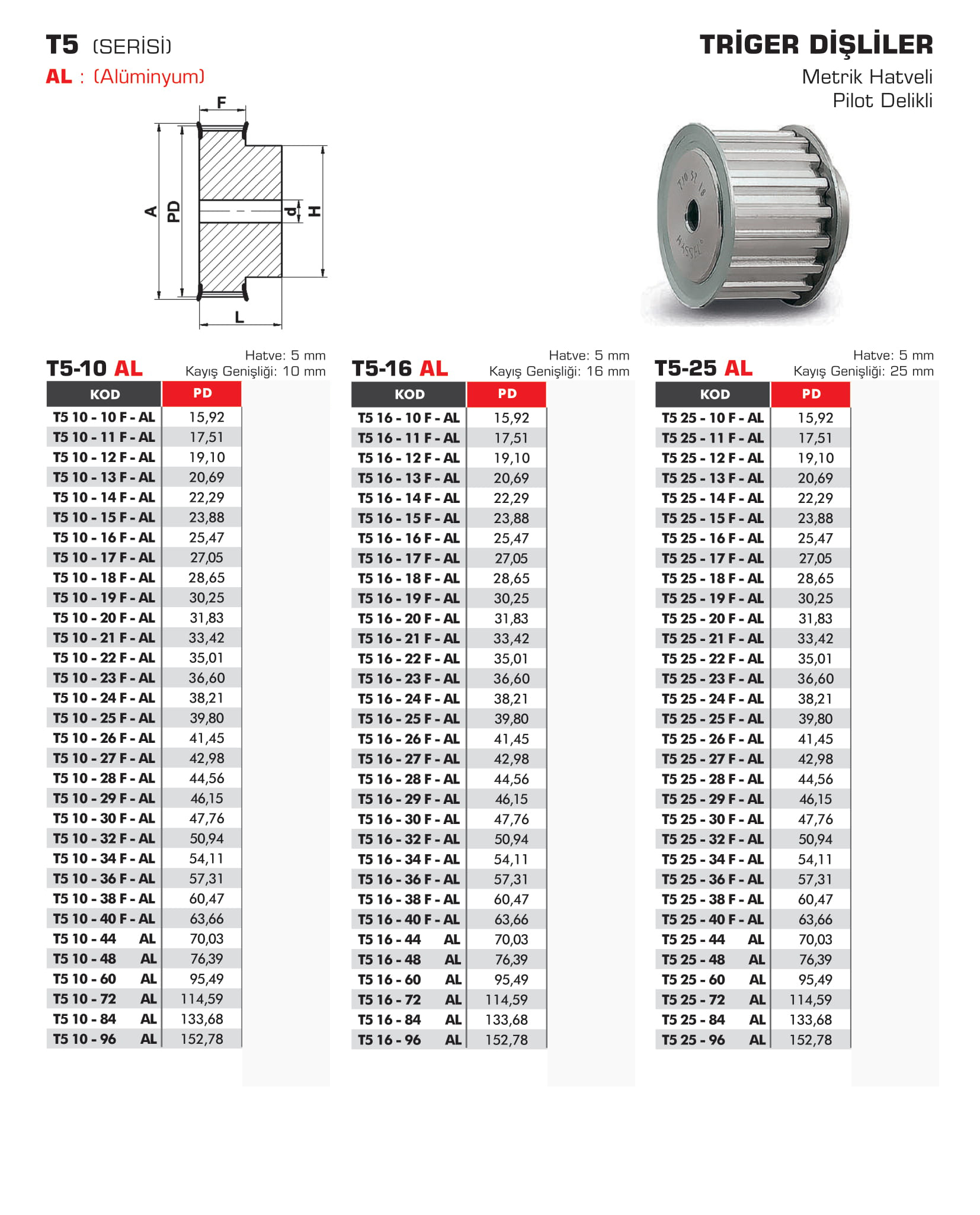 TRİGER DİŞLİLER T5 10 16 25 AL SERİSİ