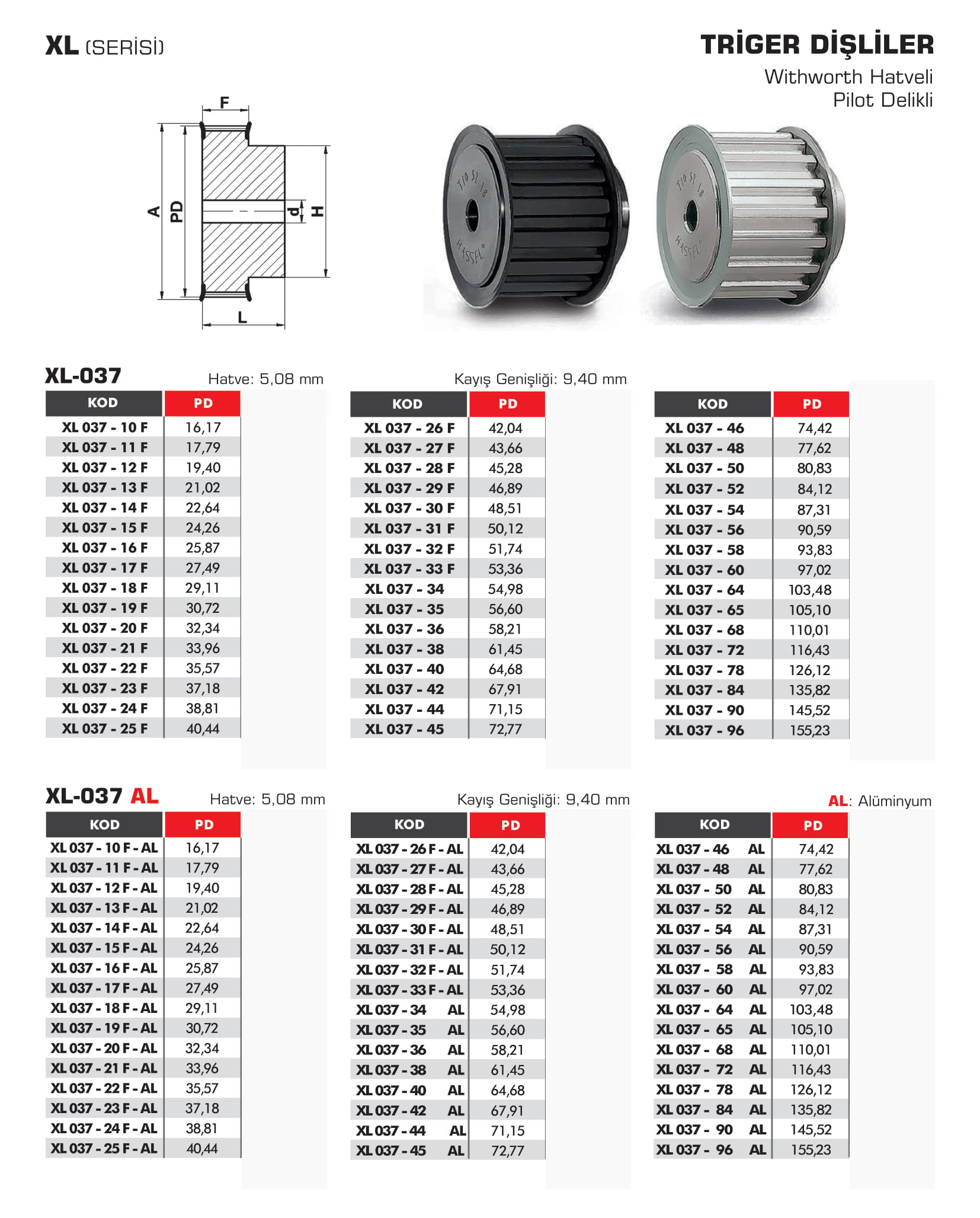 TRİGER DİŞLİLER XL 037 SERİSİ